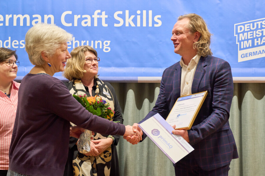 Drei der vier ausgezeichneten Betriebe 2025 wurden im Rahmen der Siegerehrung der Deutschen Meisterschaft im Handwerk auf Bundesebene ausgezeichnet.